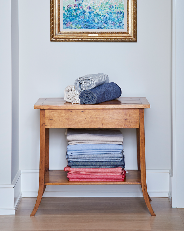 Crafted from the superfine fibers found on the underside of the cashmere goat, these cashmere/merino wool throws are the newest addition to our selection.